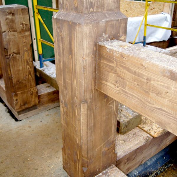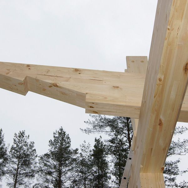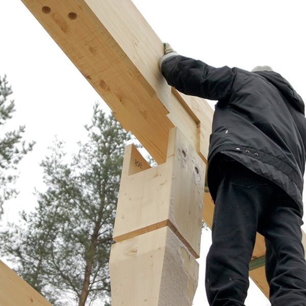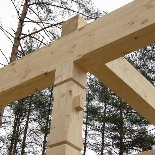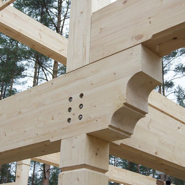 После сращивания в длины 12 / 13,5 метров ламели прессуются под заготовки будущей балки необходимого сечения.
